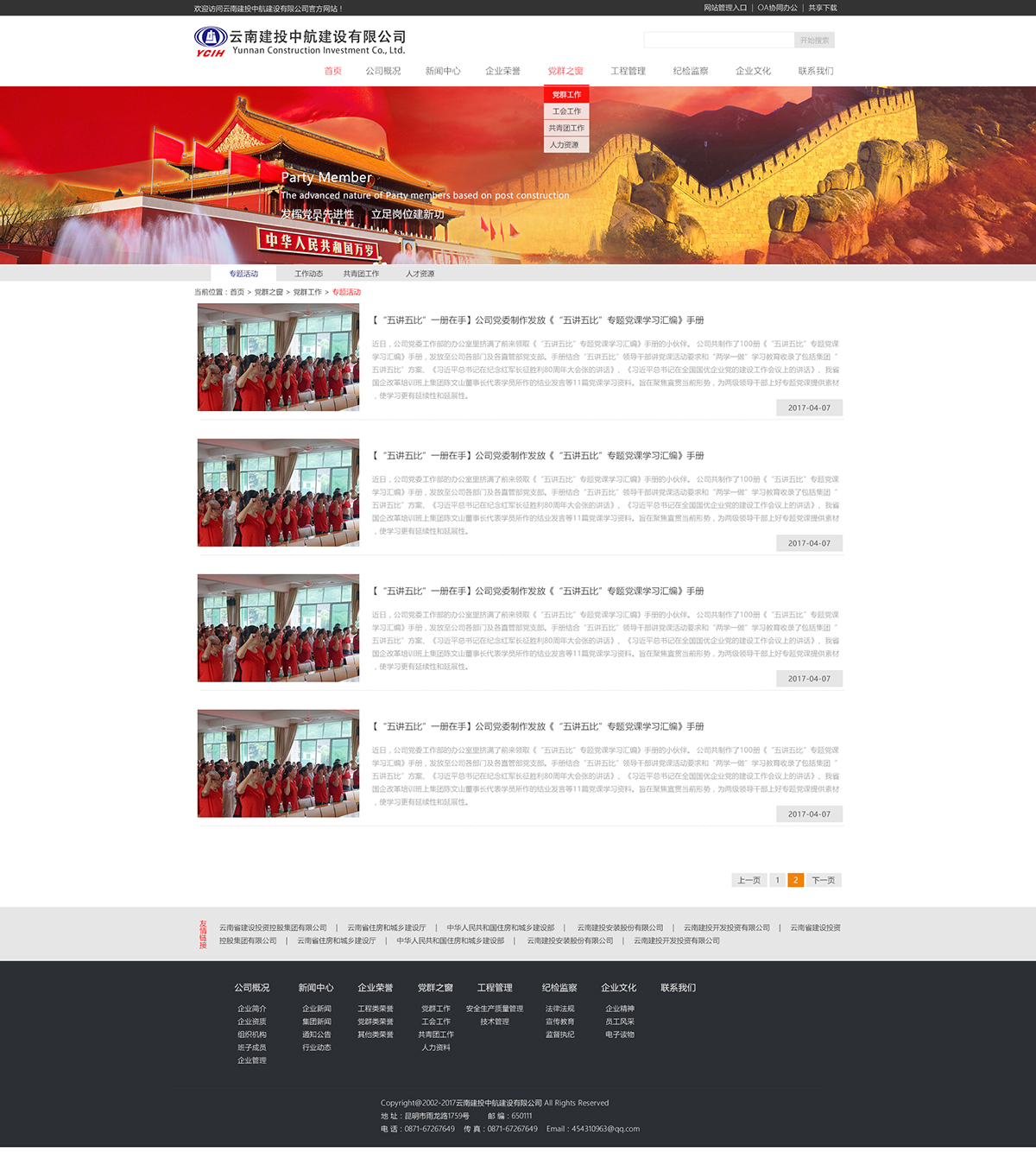 云南建投中航建設(shè)有限公司(簡稱“建投中航公司”)是云南建設(shè)投資控股集團(tuán)有限公司的全資子公司,企業(yè)注冊資本金1.5億元。公司擁有市政公用工程施工總承包壹級,公路工程、水利水電工程、房屋建筑工程和港口與航道工程施工總承包貳級、混凝土預(yù)制構(gòu)件專業(yè)貳級和城市及道路照明工程專業(yè)承包叁級資質(zhì)。現(xiàn)有在職員工600余人,其中一級建造師22人,高級工程師45人,中級工程師190人。云南建投中航建設(shè)有限公司官方網(wǎng)站由云南承錦科技有限公司提供技術(shù)支持,網(wǎng)站包含欄目:公司概況、企業(yè)榮譽、工程管理、新聞中心、黨群之窗、紀(jì)檢監(jiān)察、企業(yè)文化和聯(lián)系我們等欄目等。